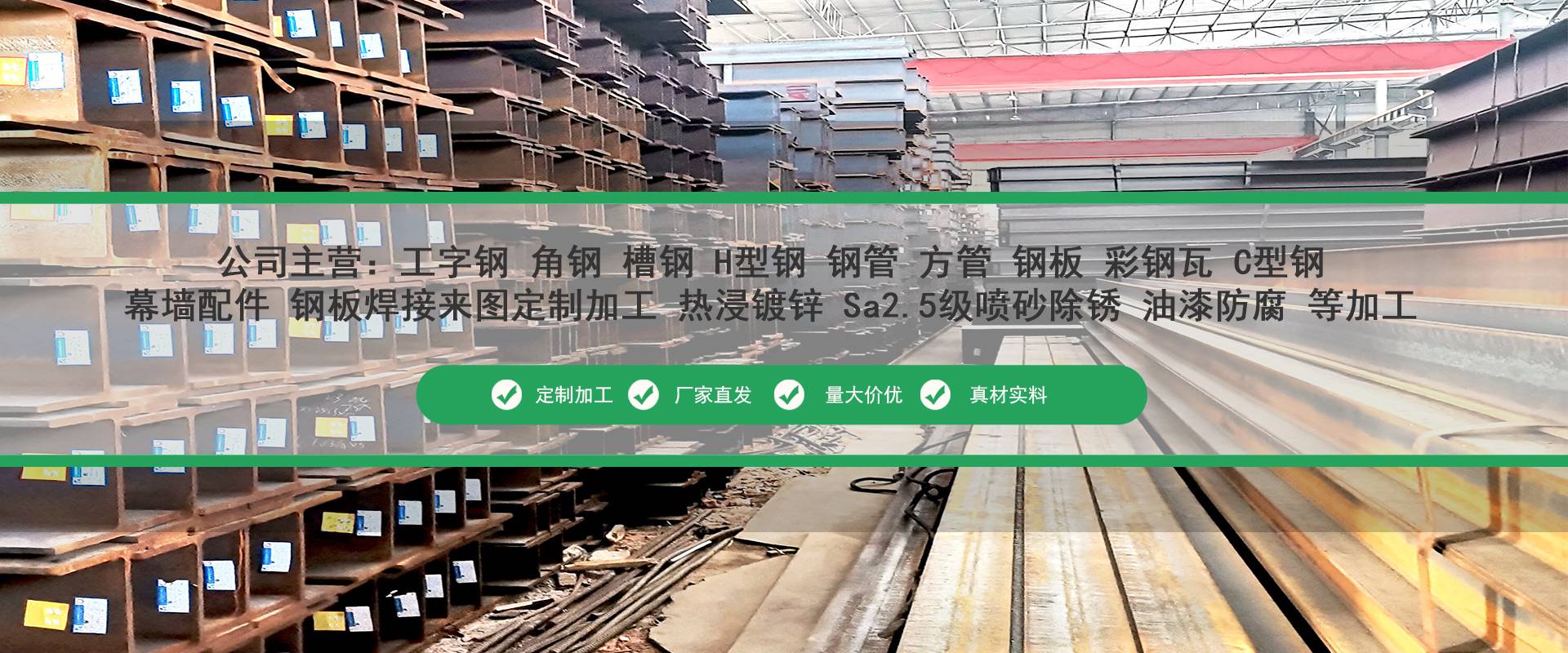 廣東佛山京錦鋼鐵是華南地區(qū)大型鋼鐵貿(mào)易商,廣東華南鋼材現(xiàn)貨批發(fā)交易,主營工字鋼、槽鋼、角鋼、H型鋼、鋼管、鋼板等,型號規(guī)格齊全,批發(fā)價格更優(yōu),公司配有鋼管防腐加工廠,熱浸鍍鋅生產(chǎn)線二條,鋼材Sa2.5級噴砂,拋丸除銹,高頻焊接、折彎、沖孔、鋼板切割、等配套加工廠歡迎來電咨詢。